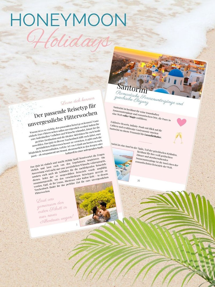 Stellt euch vor: Ein frisch vermähltes Paar schlägt ein Buch auf und entdeckt darin Ideen für die Reise ihres Lebens. Der Honeymoon Guide ist mehr als nur ein Geschenkbuch für die Hochzeitsreise – er ist Inspiration, Planungshilfe und Erinnerung in einem.