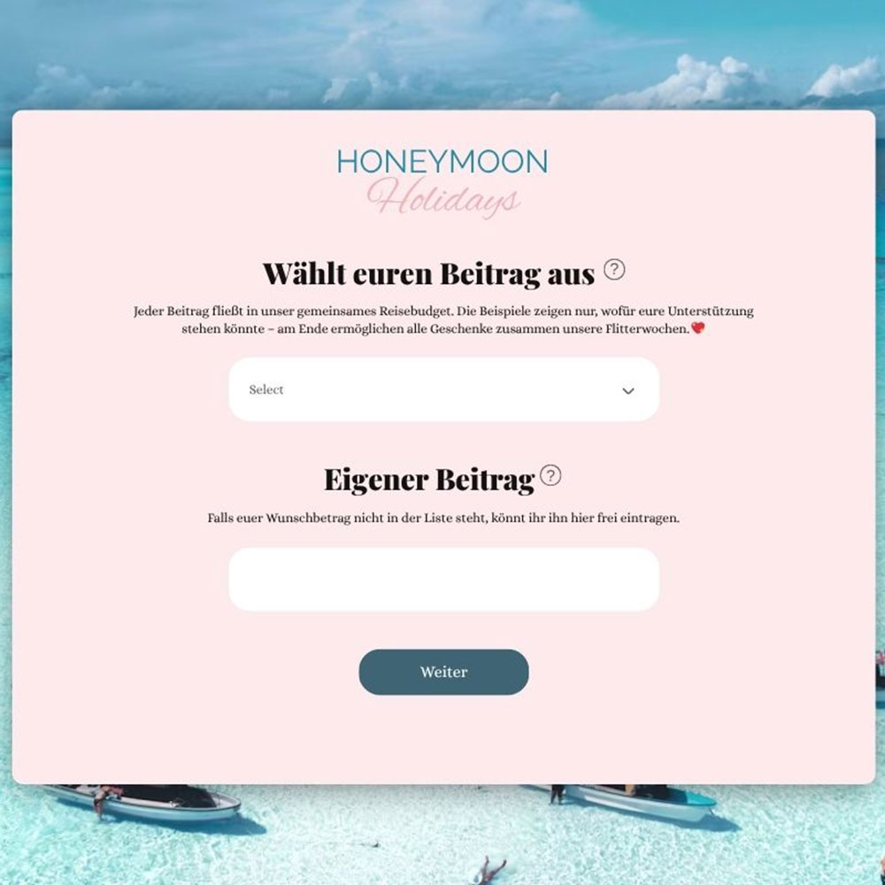 Guide entdeckenGeldgeschenke für die Flitterwochen – Eure eigene Geschenkeseite